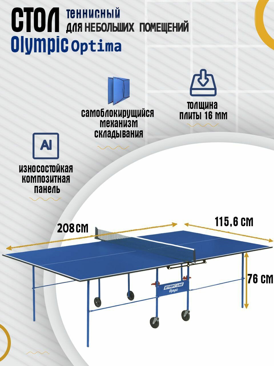 Теннисный стол Start Line Olympic Optima для помещений (встроенная сетка, цвет синий)