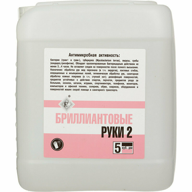 Антисептик для рук и поверхностей спиртосодержащий (69%) 5л бриллиантовые РУКИ-2, дезинфицирующий, жидкость Комплект : 1 шт .
