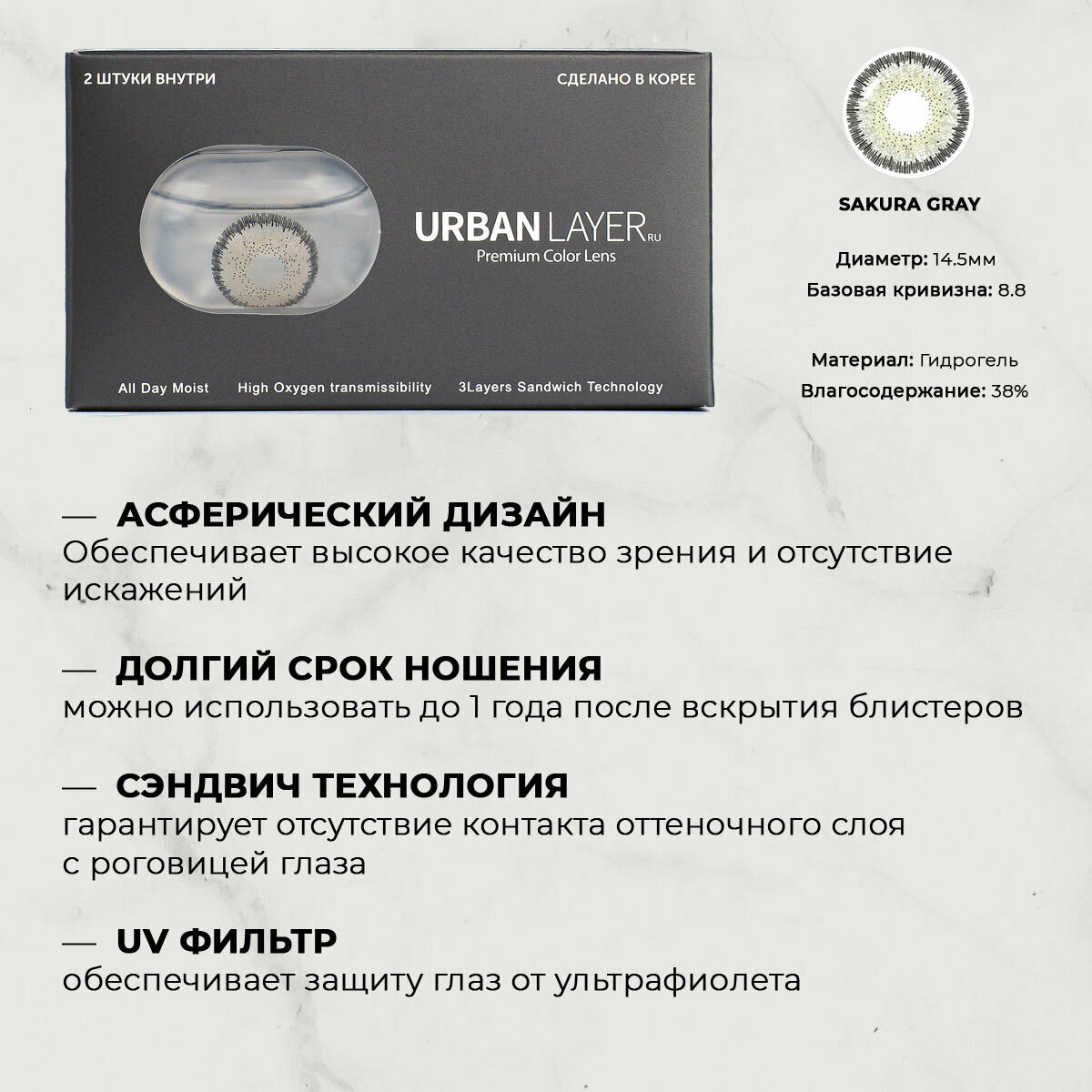 Купить Цветные контактные линзы URBAN LAYER ru Sakura Gray -2.0 / 14.5 / 8.8 / 2шт.