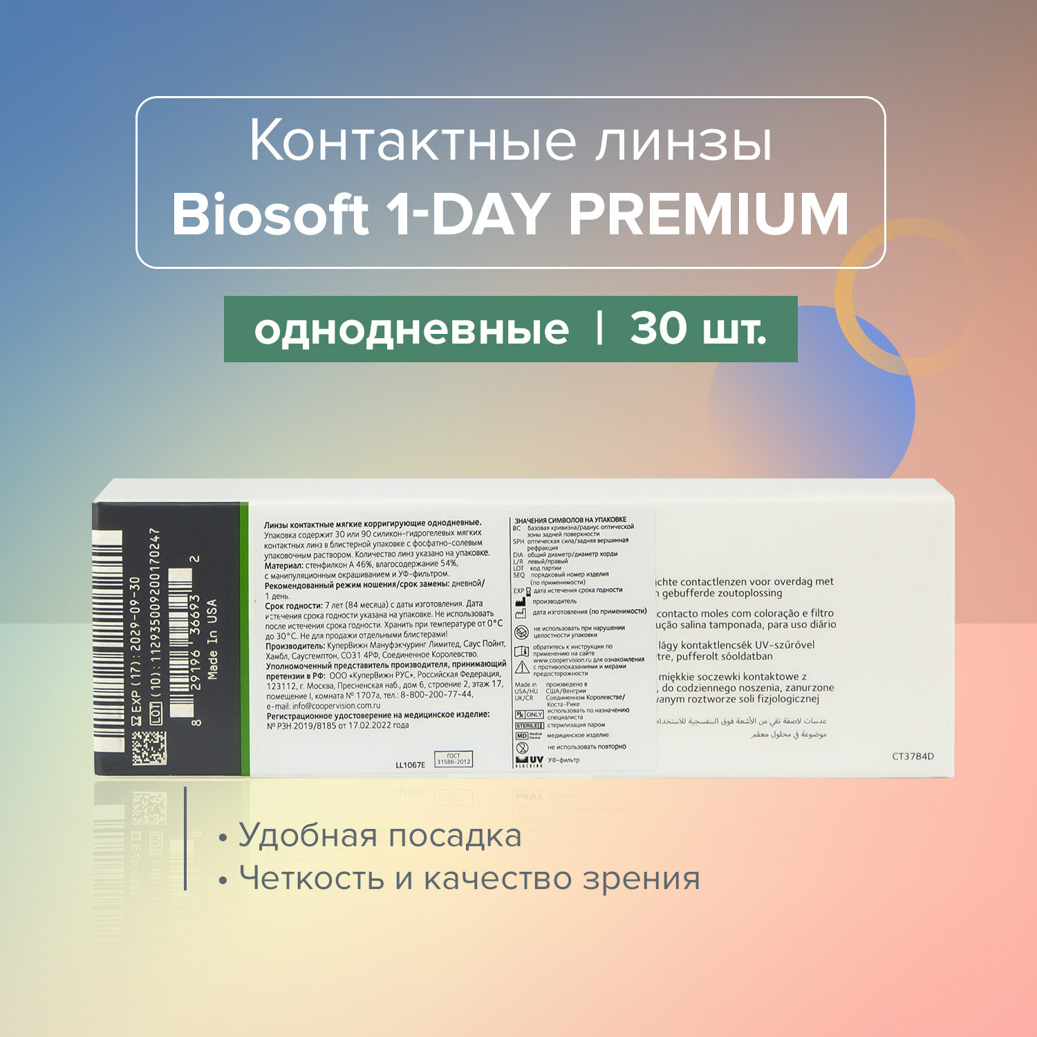 СохранитьКонтактные линзы Biosoft 1 Day Premium однодневные Sph.+01.00/14,2/8.4, 30 шт. интересное:
