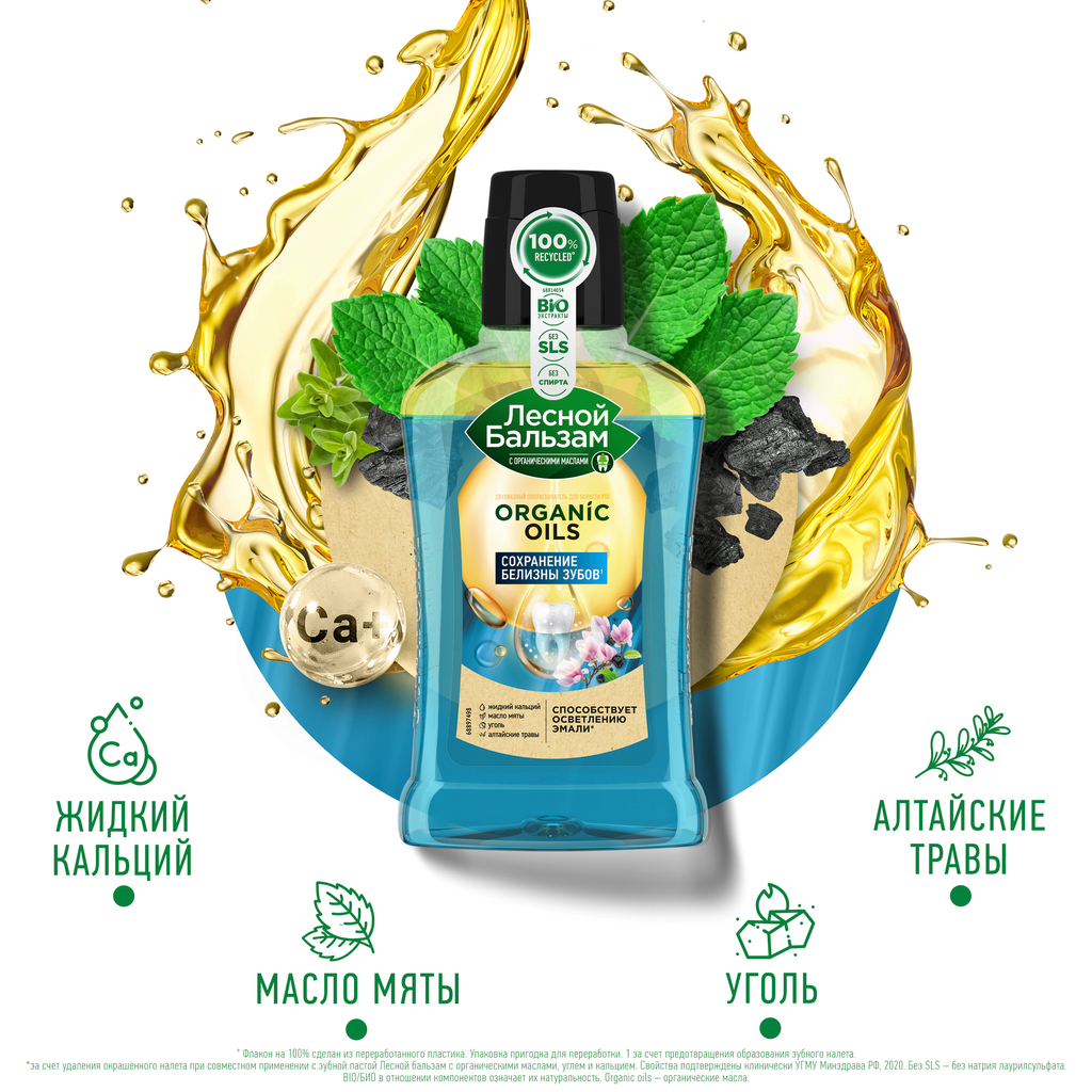 Лесной бальзам Ополаскиватель для полости рта Organic Oils Уголь и кальций, двухфазный, 250 мл