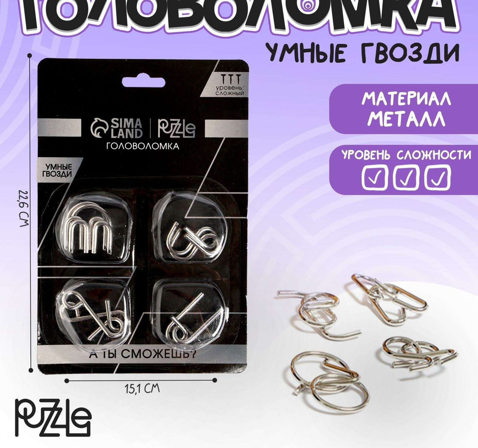 Puzzle Набор металлических головоломок «Игры разума №4»,на блистере