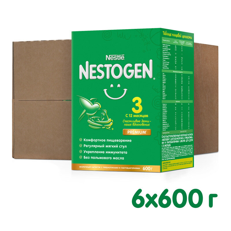 Молочко детское Nestle Nestogen Premium 3, с 12 месяцев, для комфортного пищеварения, 600 г 6 шт