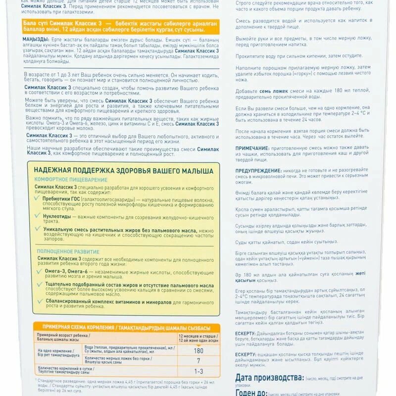 Плюсы: • Вкус. На мой взгляд он реально молочный. Дочке нравится! Раньше покупали другое питание (никак не могу вспомнить название - по-моему "Нордмил"), но после его исчезновения из продажи опечалились. Подвернулся Симилак, и вот оно, решение! • Удобная упаковка (2 пакета по 350 грамм) в одной коробке, но с покупкой именно такого варианта бывают сложности; • Нормальная, не кусачая, цена. Не зря говорят, что дети - это дорого. Посмотришь на цены в магазине, и становится печально. Дочка стала "искусственицей" не по нашей воле, а из-за простудной болезни жены, и на время дочь перевели на смеси, но как выяснилось-достаточно надолго в итоге.. на грудное молоко так и не вернулась. Там-то мы сначала и хлебнули огромные расходы, покупая всякие штуки на козьем молоке за бешеные деньги. Но в итоге нашли хороший, бюджетный вариант без "рекламных накруток"; • Проблем с ЖКТ не возникало от Симилака, ребёнок спал нормально, ничего не тревожило. Аллергии не проявлялось, и это самое главное! Минусы: • Тут только по сложностям с приобретением. В больших сетях (Пятёрочка Перекрёсток, Седьмой континент и прочих) практически всегда представлена малая упаковка (350 грамм), которая ну никак бывает не выгодна (стоимость сопоставима с 700 гр. упаковкой в детском магазине). Выводы: Немного напрягает состав смеси, но практически со всеми смесями так. Проконсультировались со специалистами - ничего криминального в составе в итоге не нашли, всё вполне безопасно. Вообщем, некоторая экономия оправдана. Хорошая молочная смесь, прошли все этапы: 1-до 6 месяцев, 2-с 6 до 12 месяцев, сейчас 3 - от года и выше. Всем довольны! Никаких проблем с кормёжкой - ребёнок есть смесь с удовольствием! Супер!! |