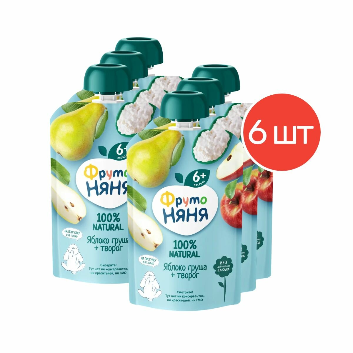 Купить Пюре ФрутоНяня из яблок и груш с творогом 90 г с 6 месяцев, 6 шт