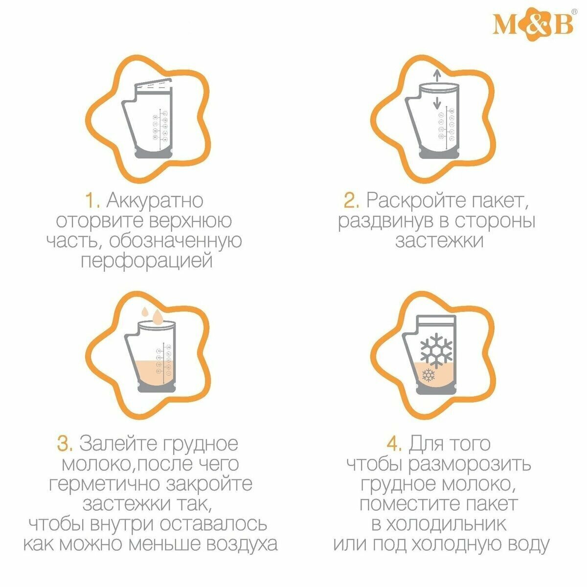 Пакеты для хранения и заморозки грудного молока M&B, 200 мл, набор 15 шт.