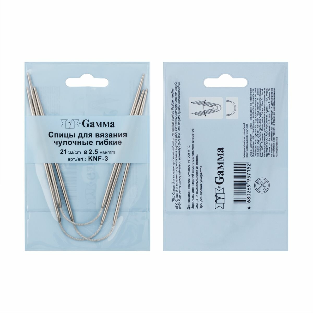 Купить Спицы Gamma чулочные гибкие KNF-3 сталь d 2.5 мм 21 см 3 шт под никель