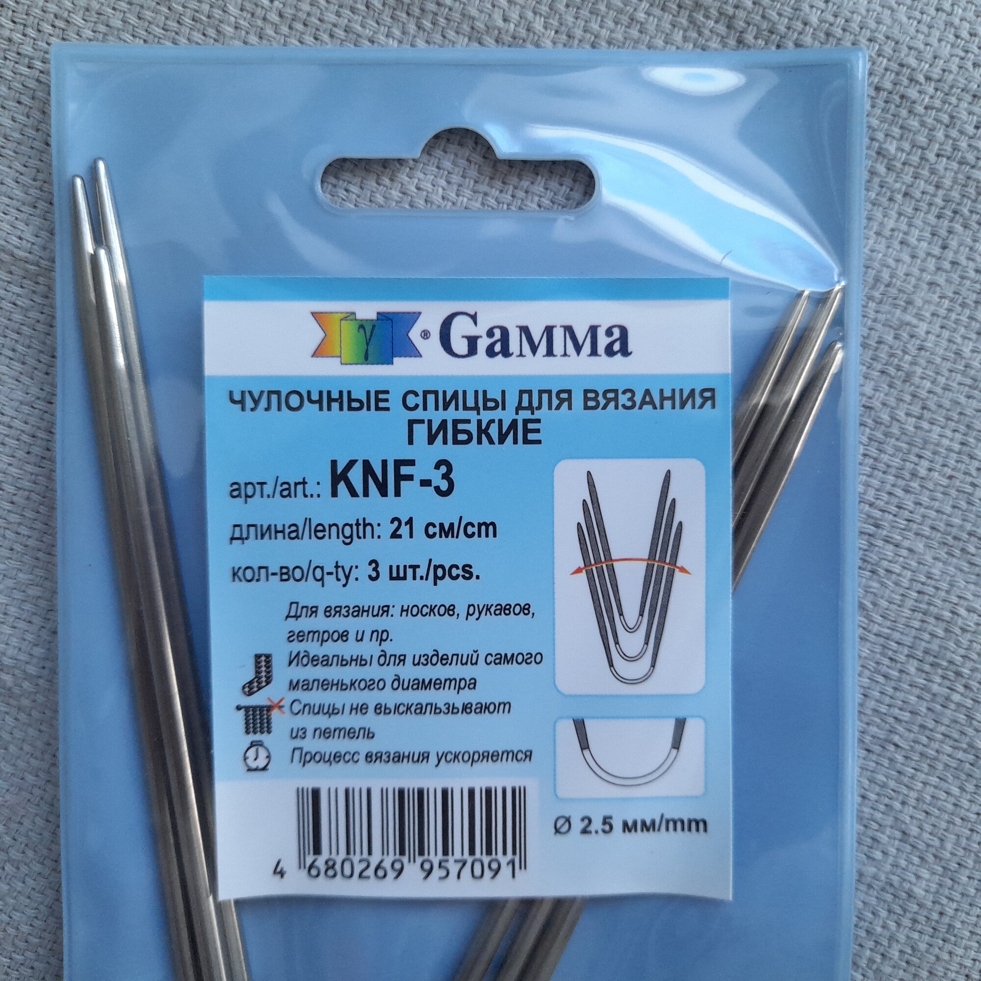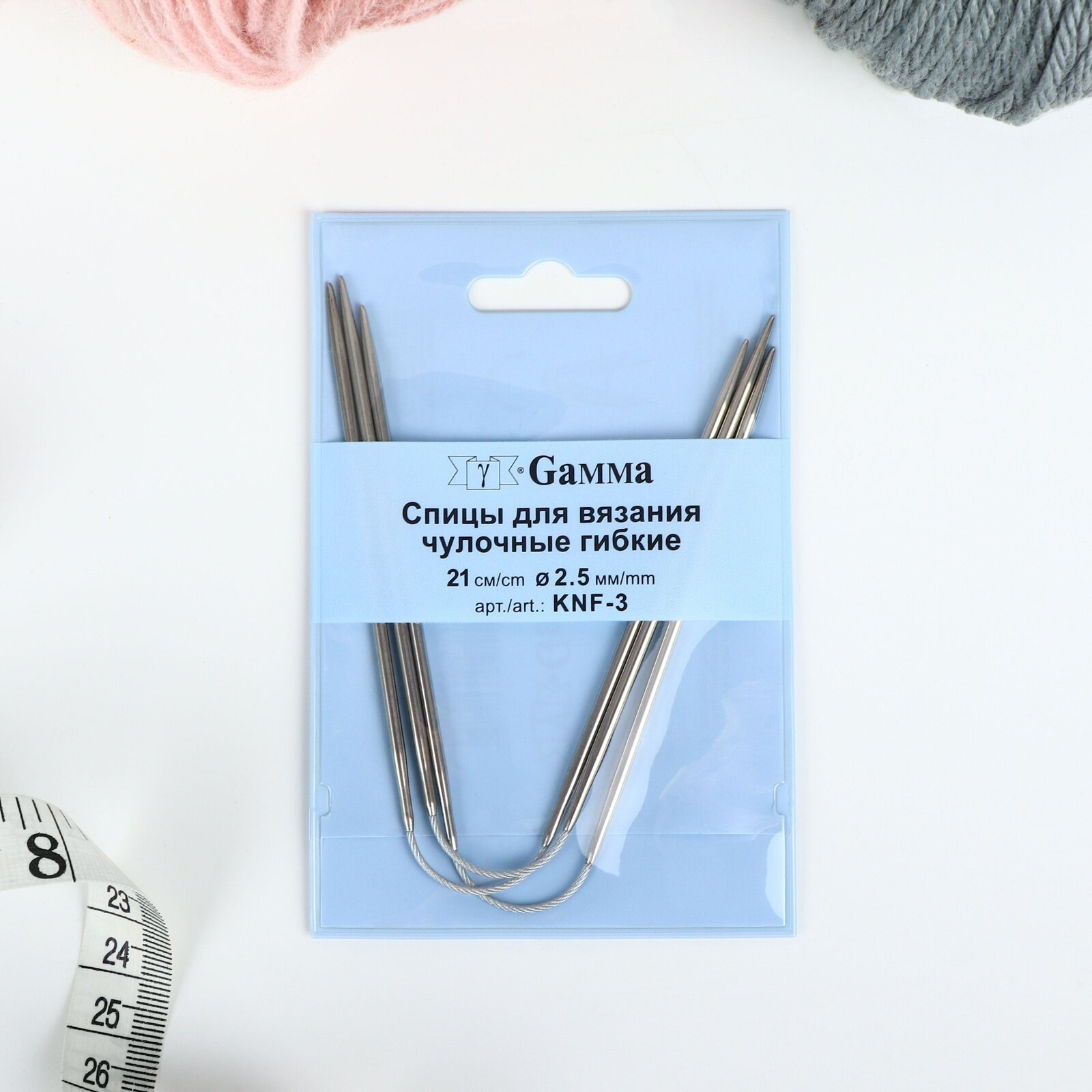 Спицы для вязания GAMMA гибкие, чулочные, металлические, d2,5мм, 21см, 3шт, 1шт