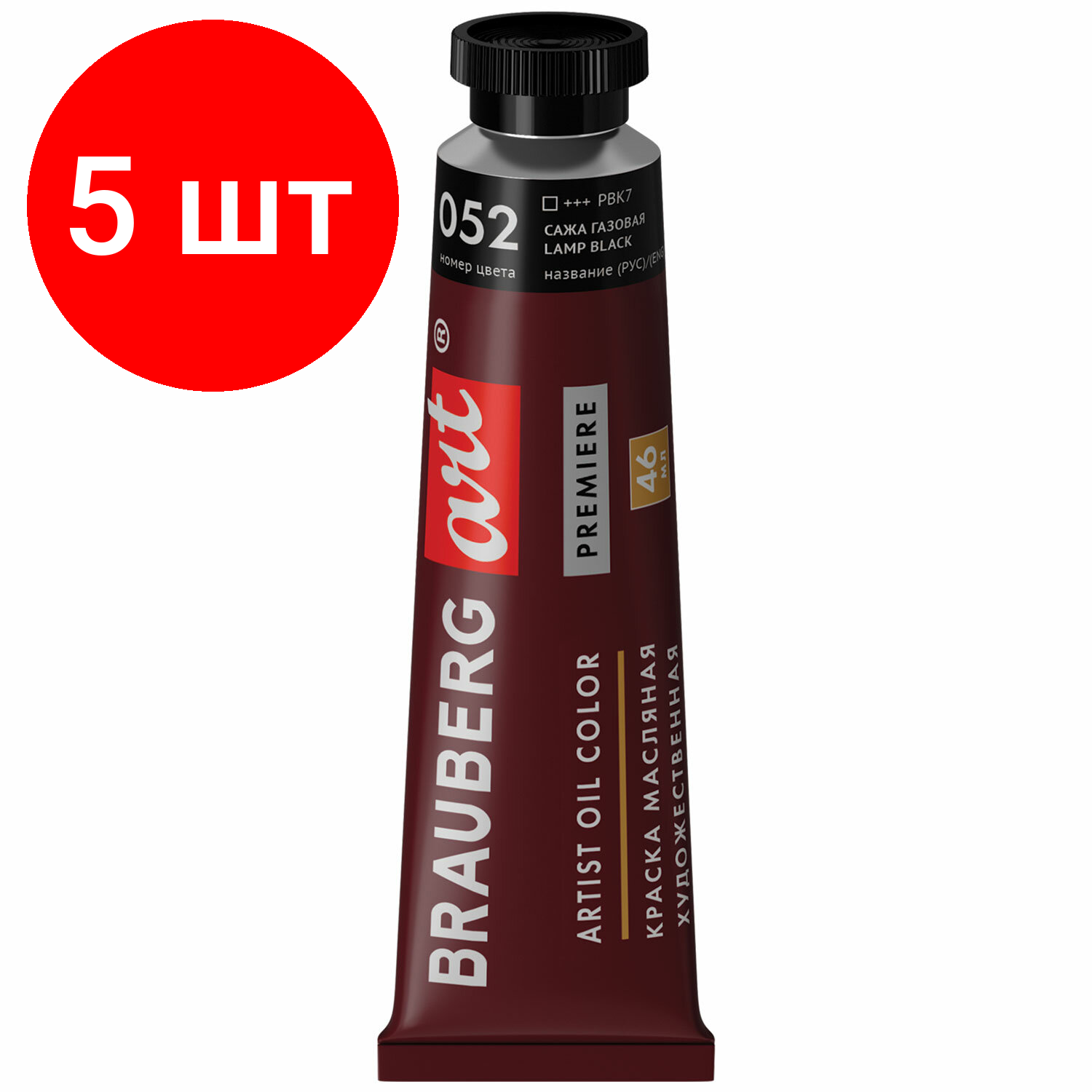 Купить Краска масляная художественная BRAUBERG ART PREMIERE, 46 мл, проф. серия, сажа газовая, 191446 /Квант продажи 1 ед./