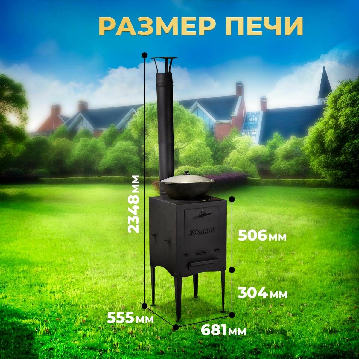Печь для казана объемом 10 литров с ручками, съемные ножки, зольник