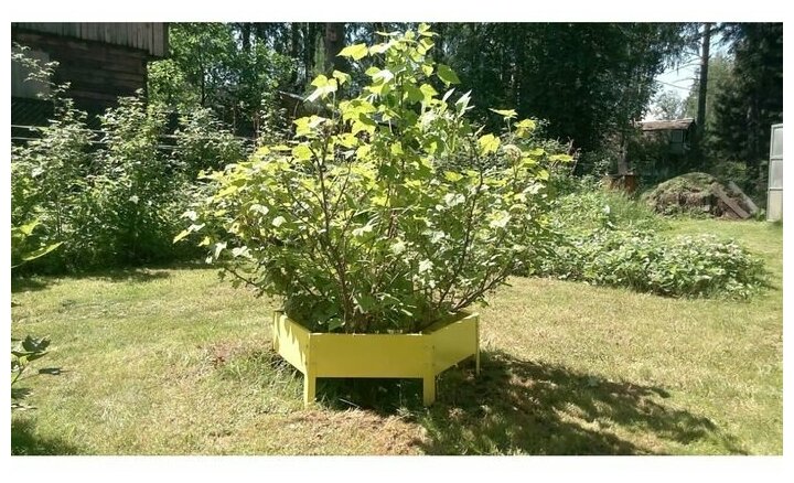 Клумба садовая оцинкованная, одноярусная шестиугольная для дачи, сада и огорода, декоративное ограждение сборное для цветов, диаметр 140 см, высота 15 см, цвет желтый