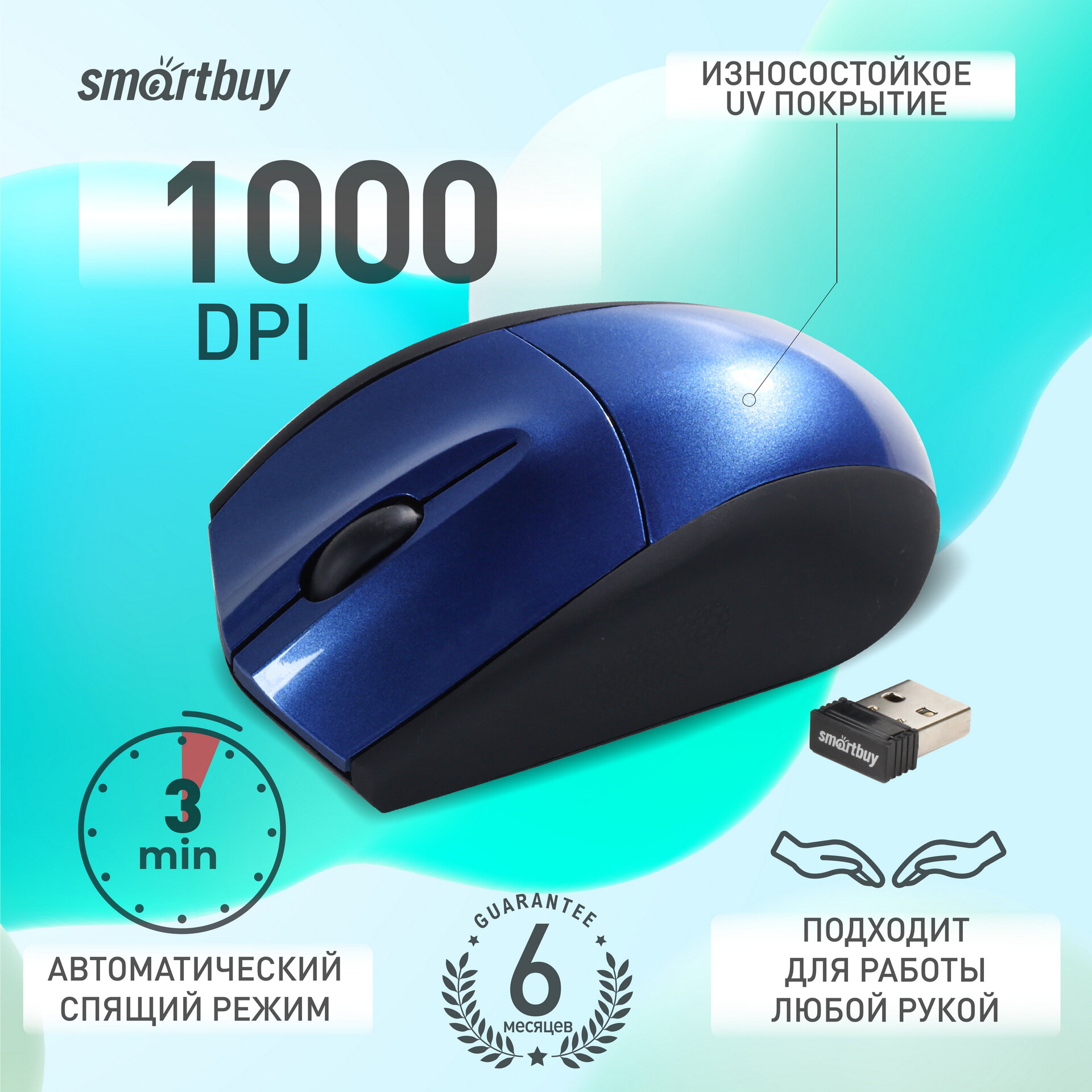 Мышь беспроводная Smartbuy 325AG USB/DPI 1000/3 кнопки/2AAA синяя (SBM-325AG-B)
