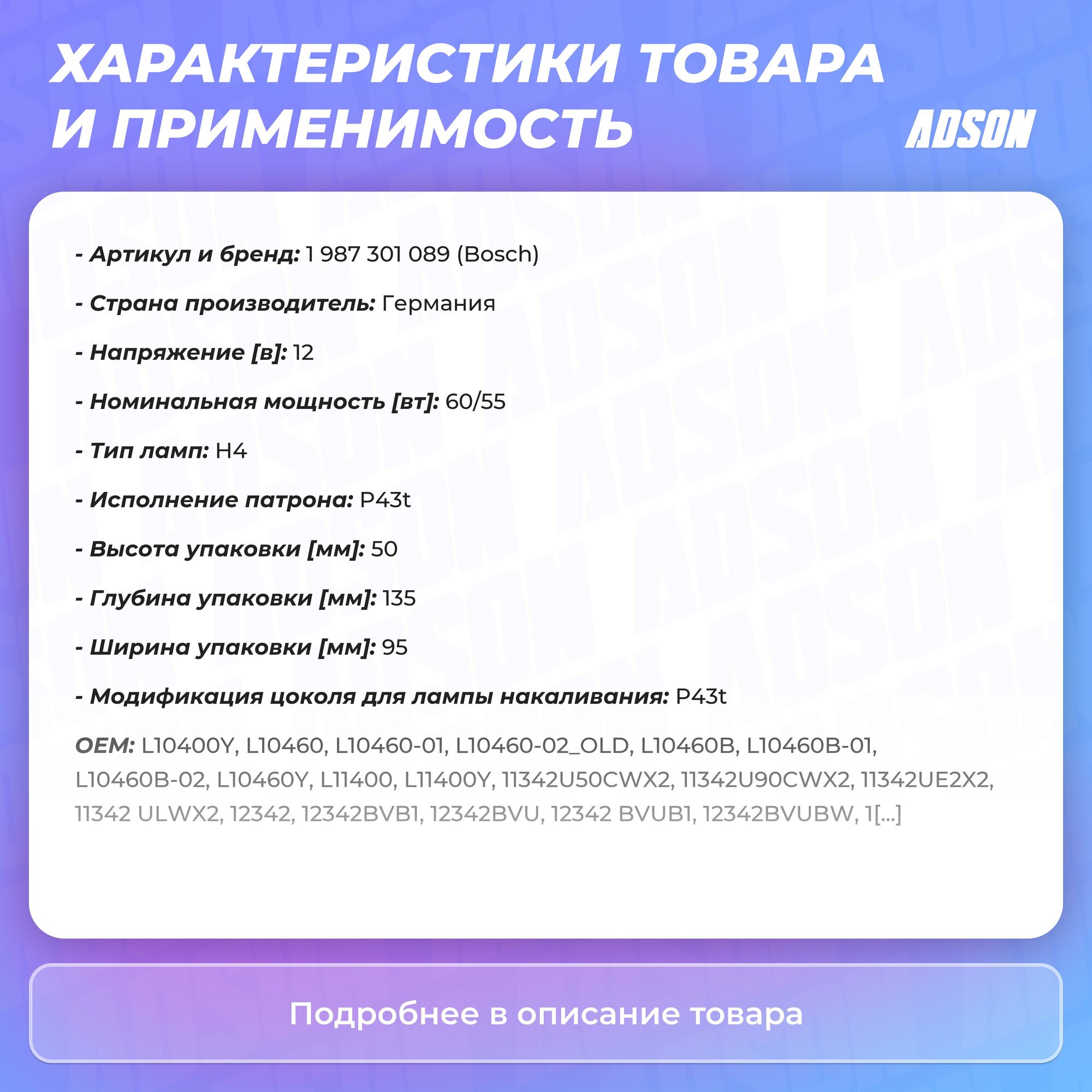 Лампы Bosch арт. 1987301089