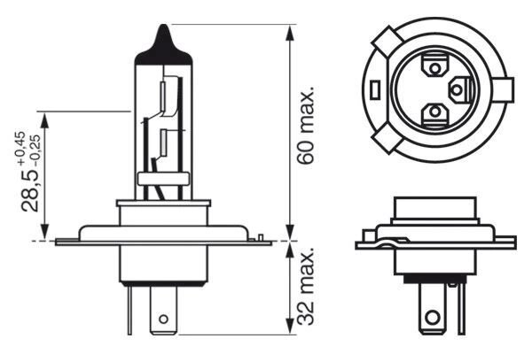 BOSCH 1987301089 Лампа 12V H4 60/55W P43t блистер (1шт.) Ultra White BOSCH