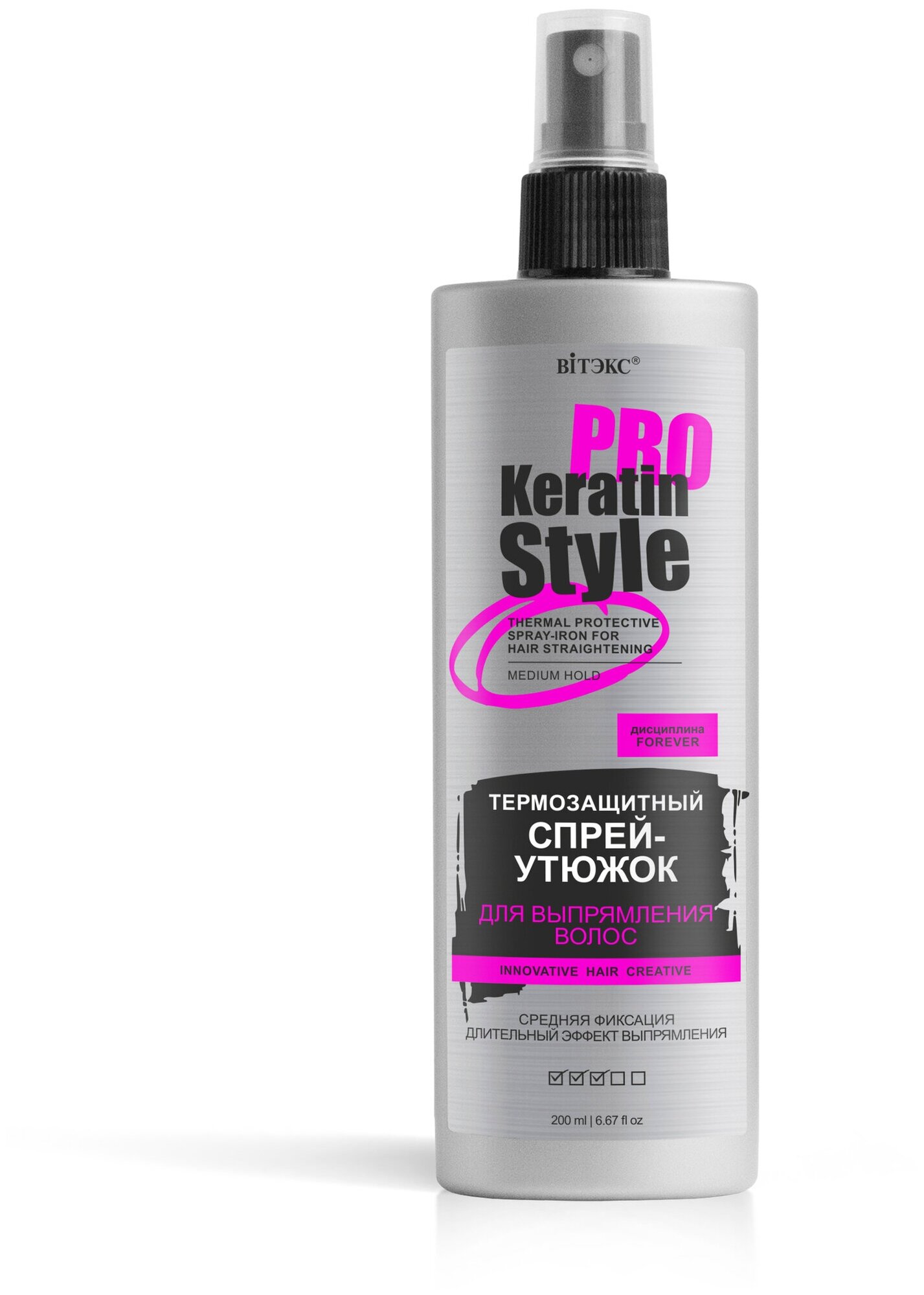 Термозащитный спрей-утюжок для выпрямления волос, 200 мл, KERATIN PRO Style, Витэкс, 4810153033116