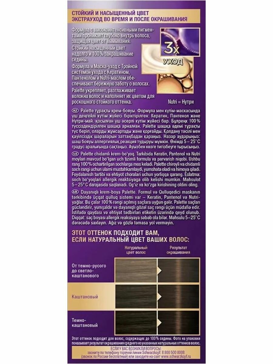 Краска для волос Palette, Палетт, Благородный каштан,100 мл,2 шт