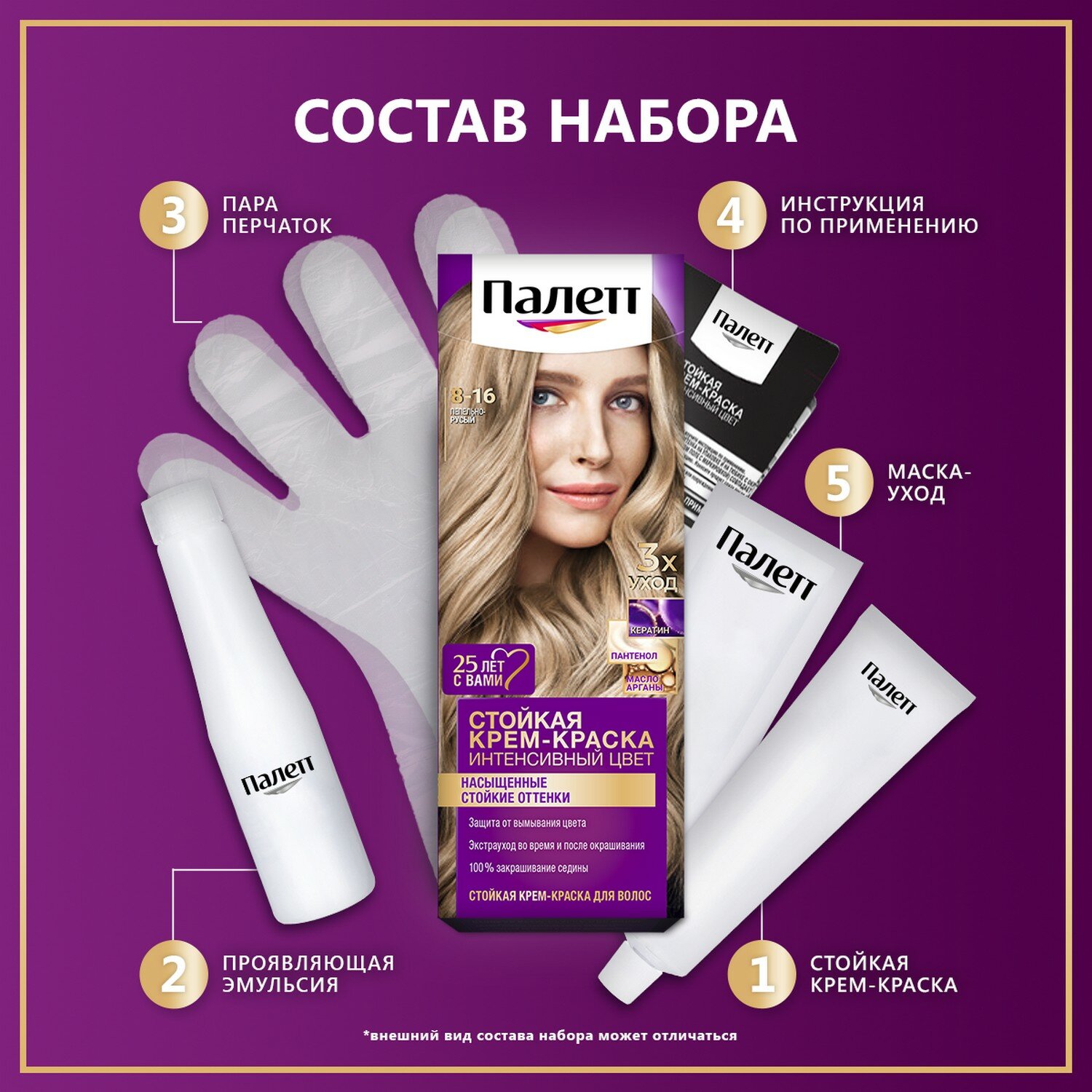 Palette Стойкая крем-краска для волос, (8-16) Пепельно-русый, защита от вымывания цвета, 110 мл