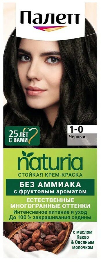 Палетт Naturia Стойкая крем-краска для волос, 1-0 Черный, 110 мл - 2 шт