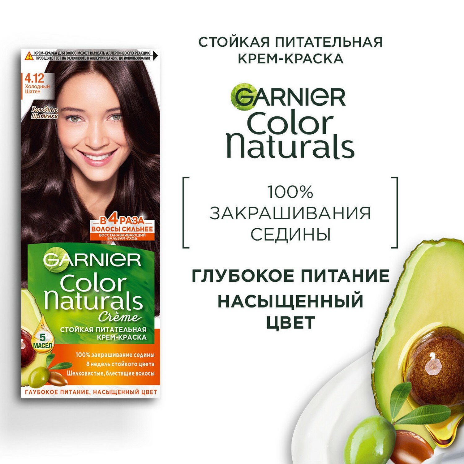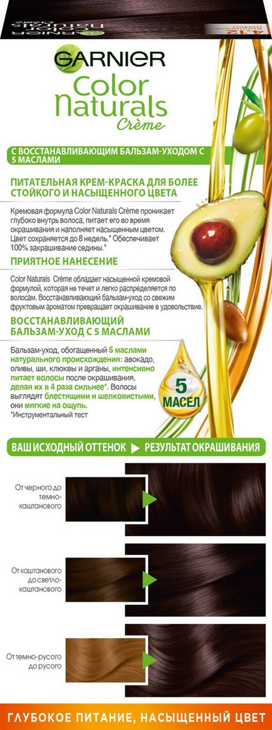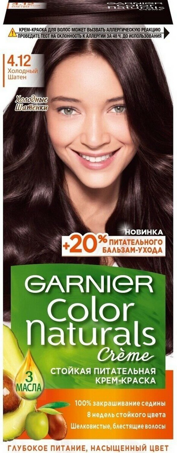 Крем-краска для волос Garnier Color Naturals с 3 маслами, тон 4.12, Холодный Шатен