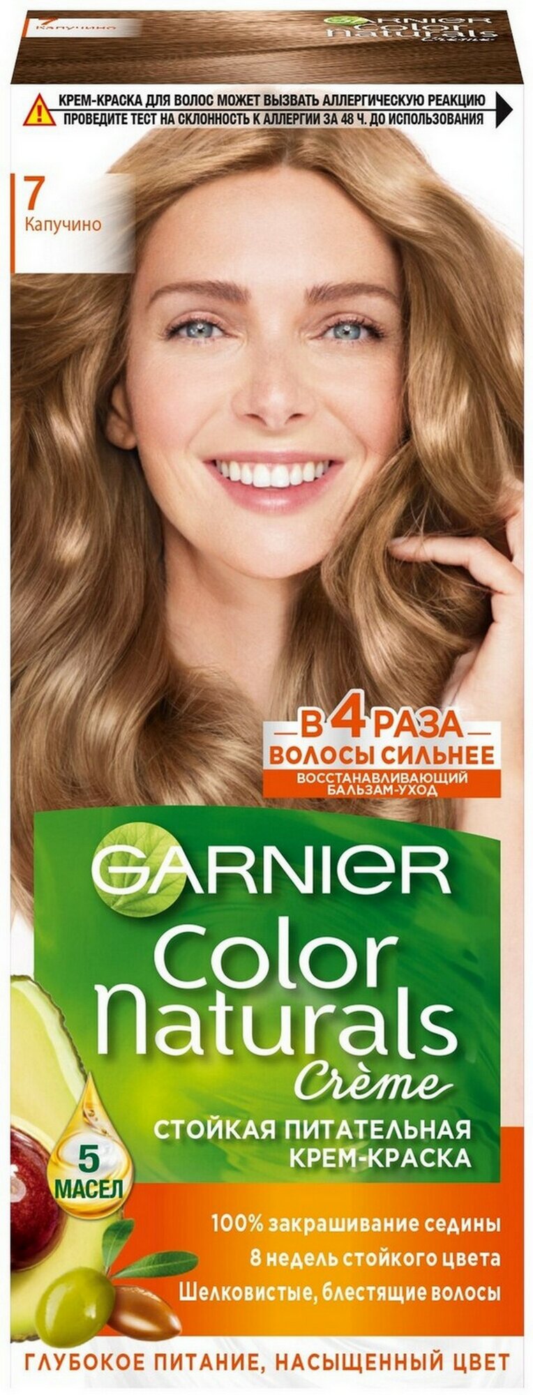 Garnier Стойкая питательная крем-краска для волос "Color Naturals", оттенок 7, Капучино, 110мл