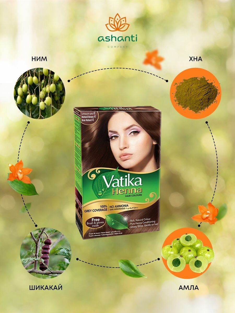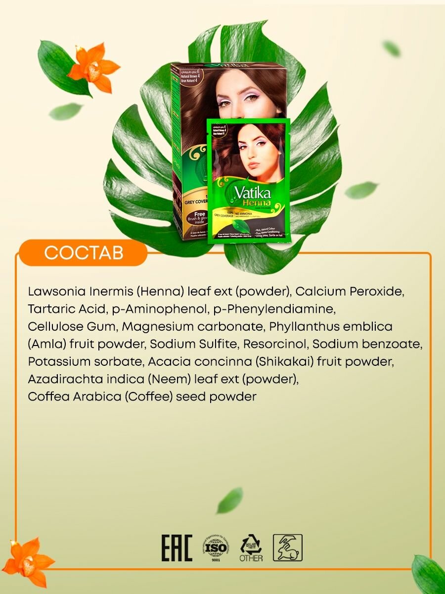 Хна для волос Vatika Henna Hair Colours Natural Brown (коричневая) Vatika 1916759 .
