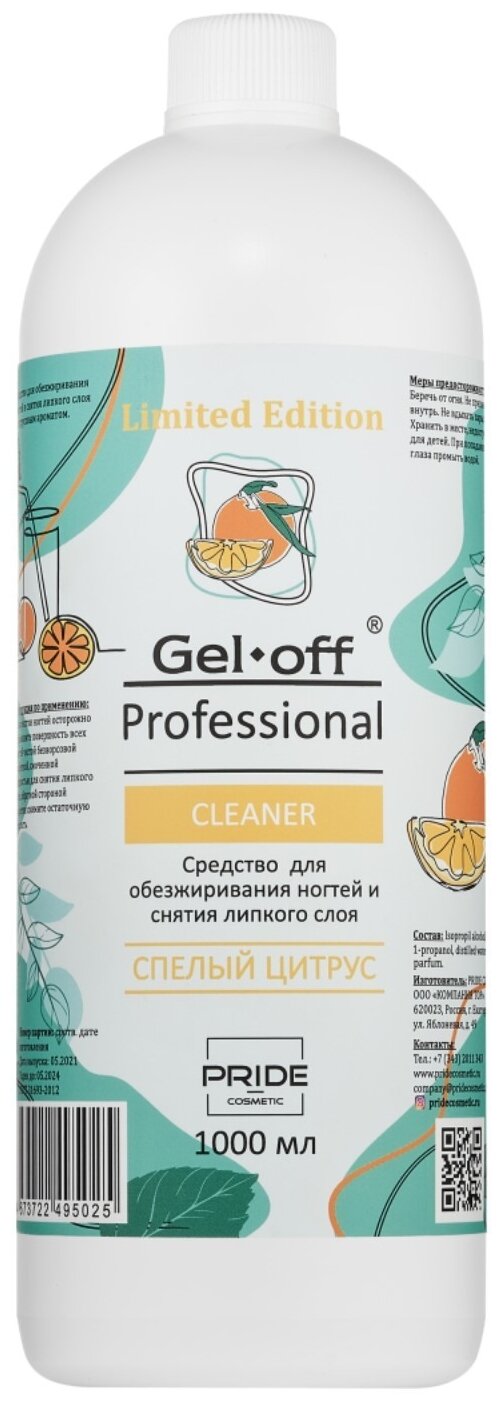 Gel*off Средство для обезжиривания ногтей и снятия липкого слоя GEL- OFF CLEANER "Спелый цитрус", 1000 мл