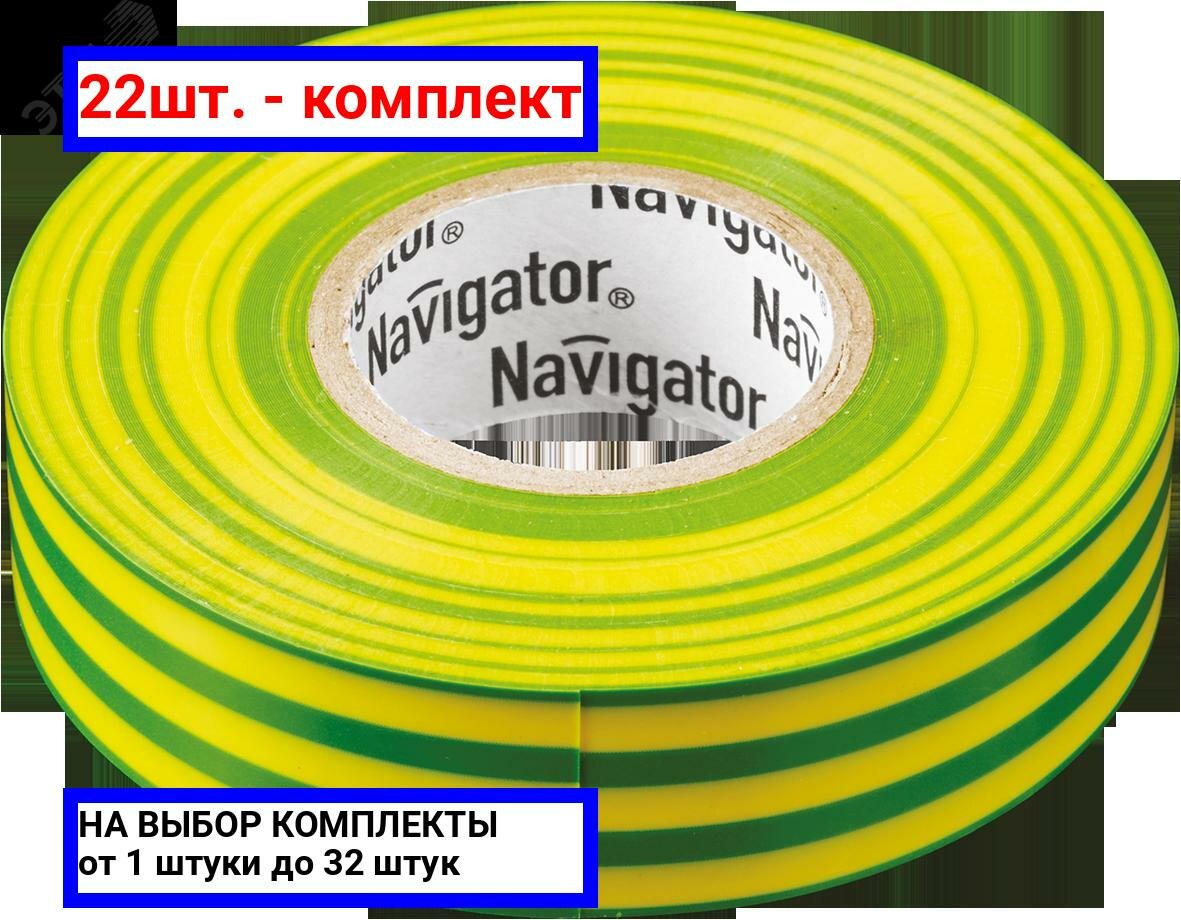 Сохранить22шт. - Изолента ПВХ желто-зеленая 15мм 20м / Navigator Group; арт. 71108; оригинал / - комплект 22шт интересное:
