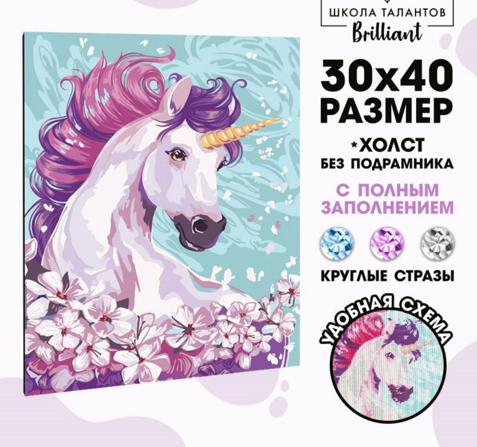 СохранитьАлмазная вышивка с полным заполнением на холсте «Единорог» 30х40 см интересное: