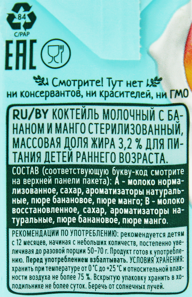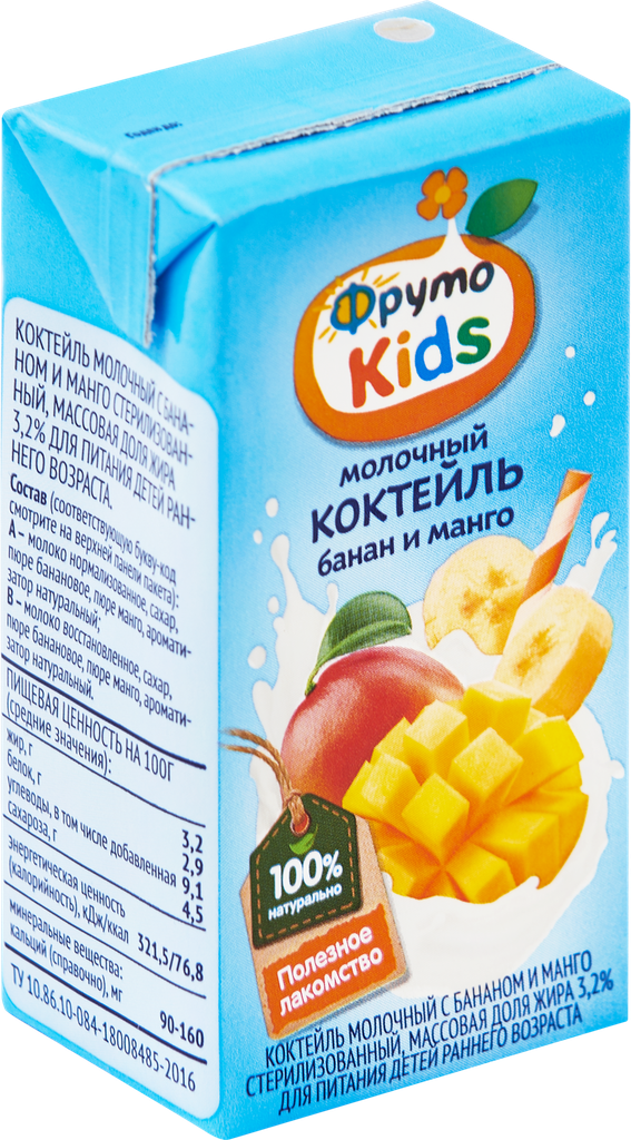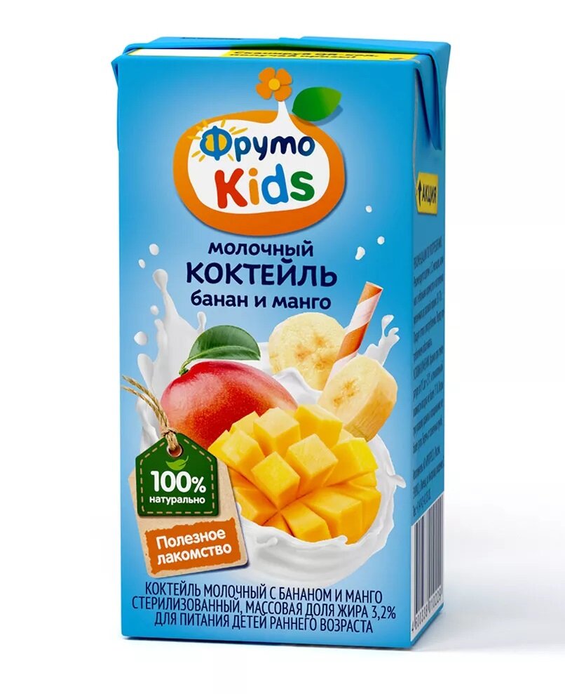 Коктейль молочный фрутоняня Kids Банан, манго 3,2%, 200мл интересное: