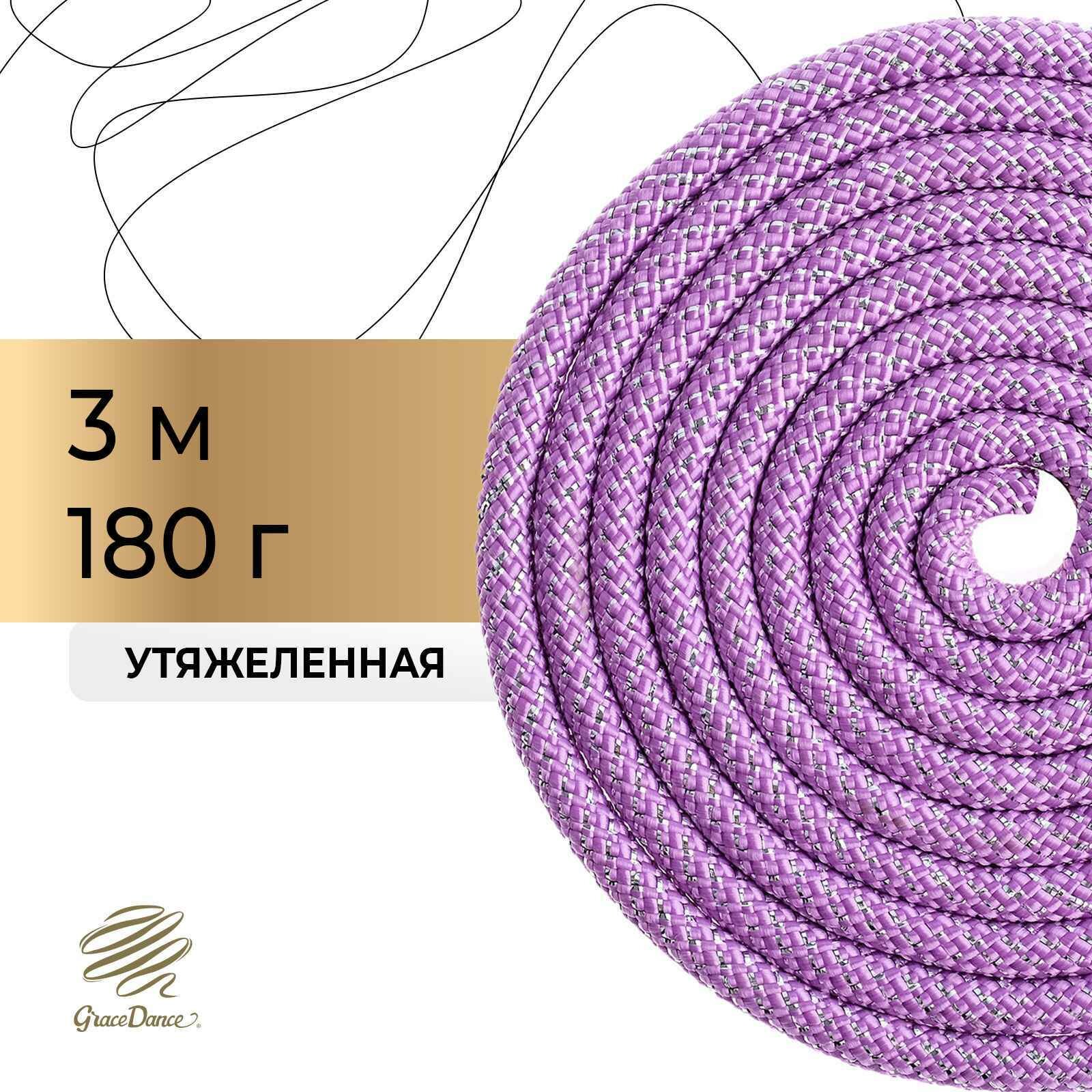 Скакалка гимнастическая утяжелённая Grace Dance, с люрексом, 3 м, 180 г, цвет сиреневый/серебристый