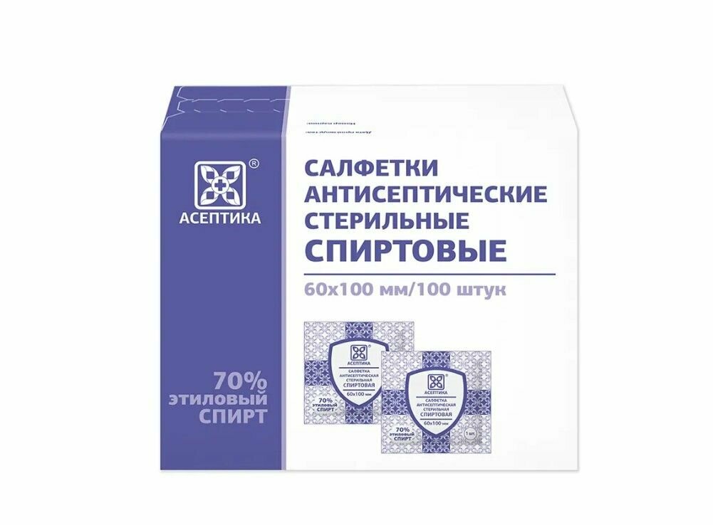 Cпиртовые cалфетки антисептические 60x100мм комплект 100шт. Асептика, короб, ЦБ03233-МО05
