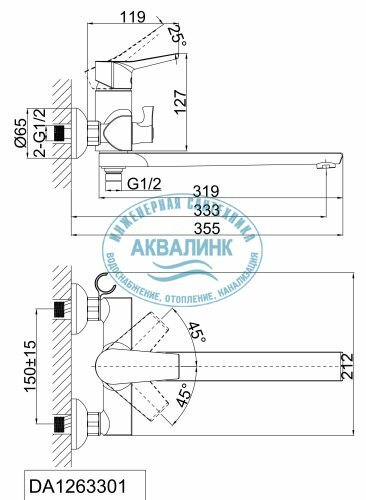 Смеситель для ванны и умывальника 38,5к D&K DA1263301 хром