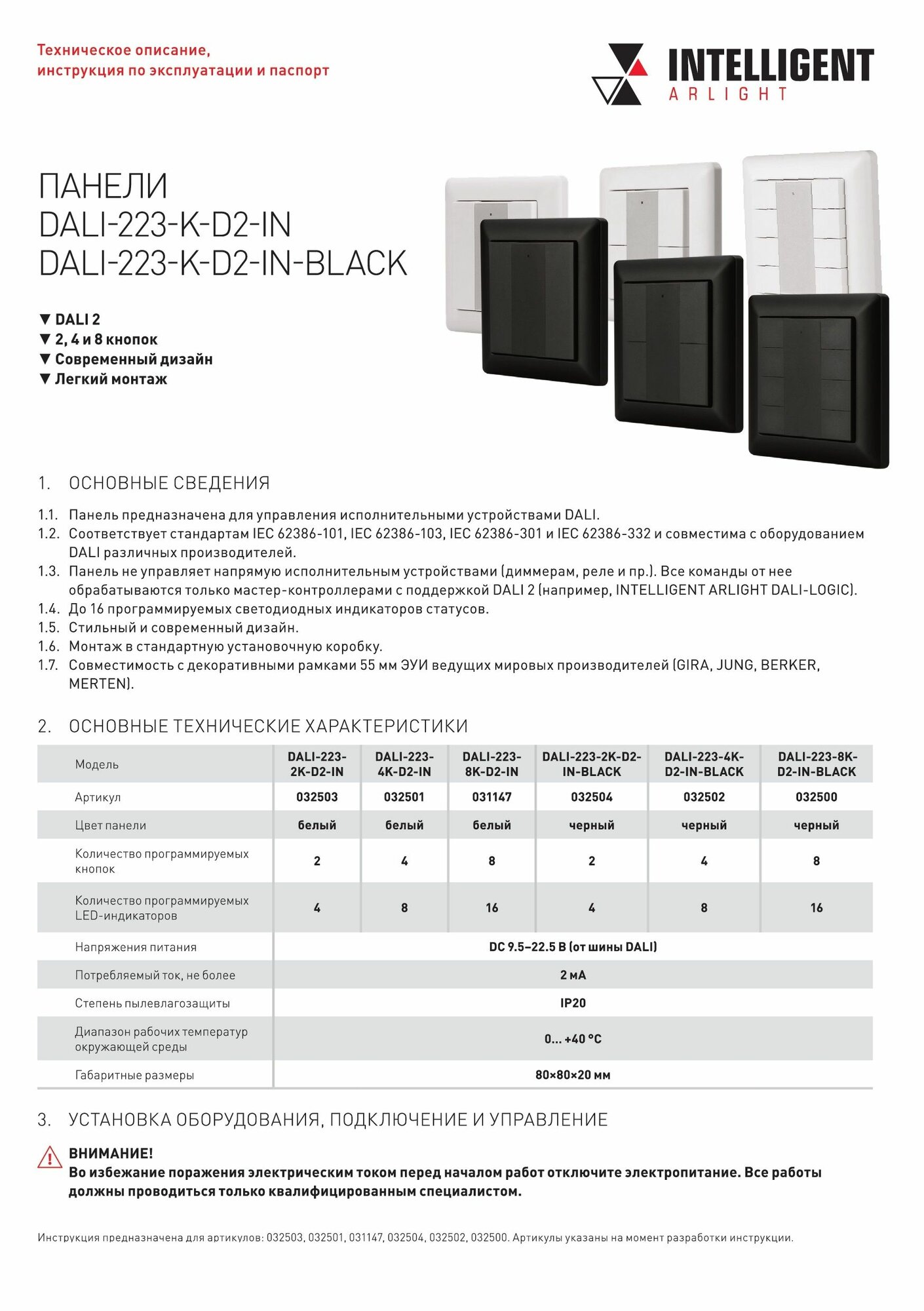 Сохранить032501 INTELLIGENT ARLIGHT Панель DALI-223-4K-D2-IN (BUS, Free purpose) (IARL, -) интересное: