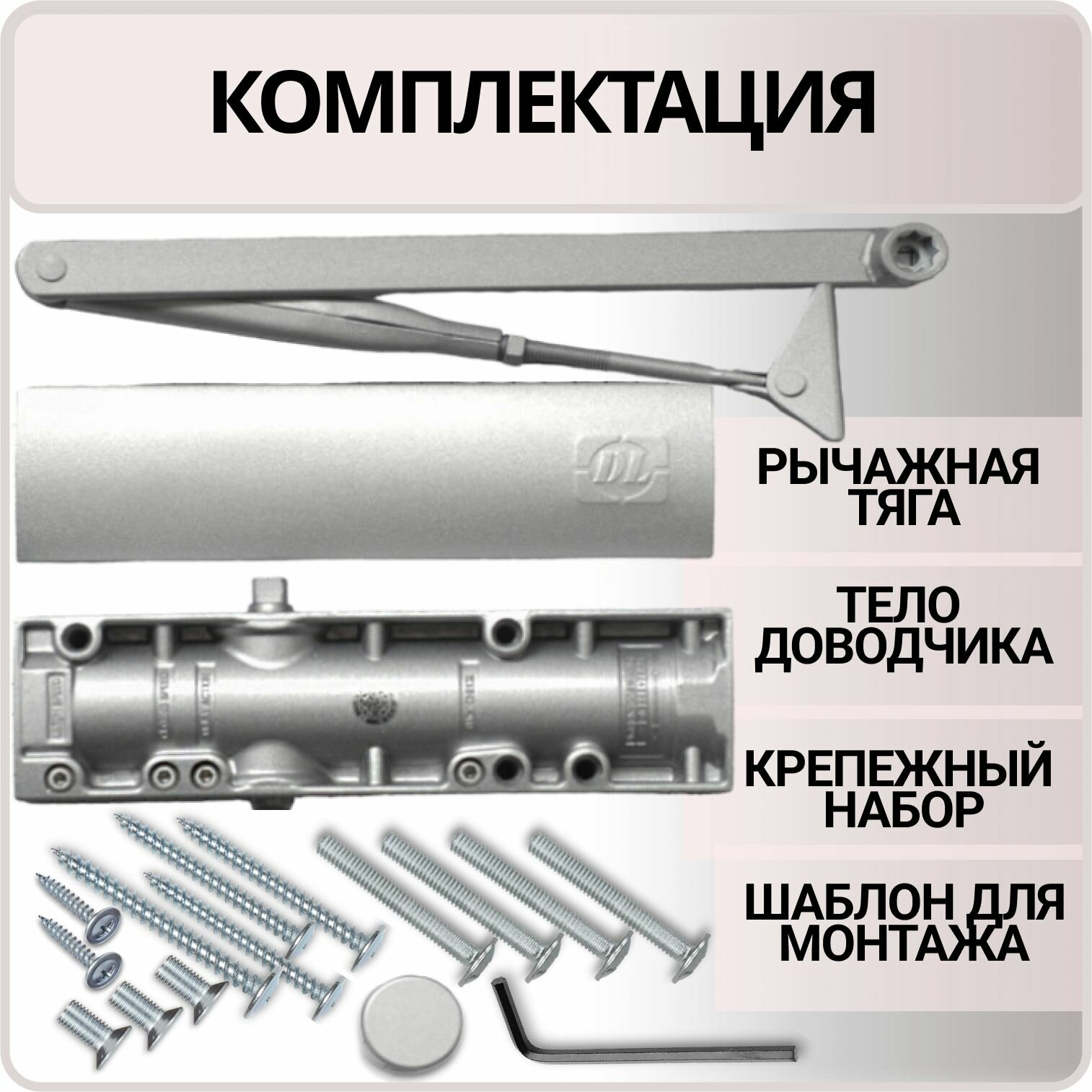 Доводчик дверной DOORLOCK DL200N BC DC EN2-5 морозостойкий, уличный серебристый до 125 кг. задержка закрывания, тормозом открывания