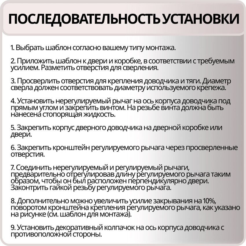 | Максимальный вес двери | 125 кг |