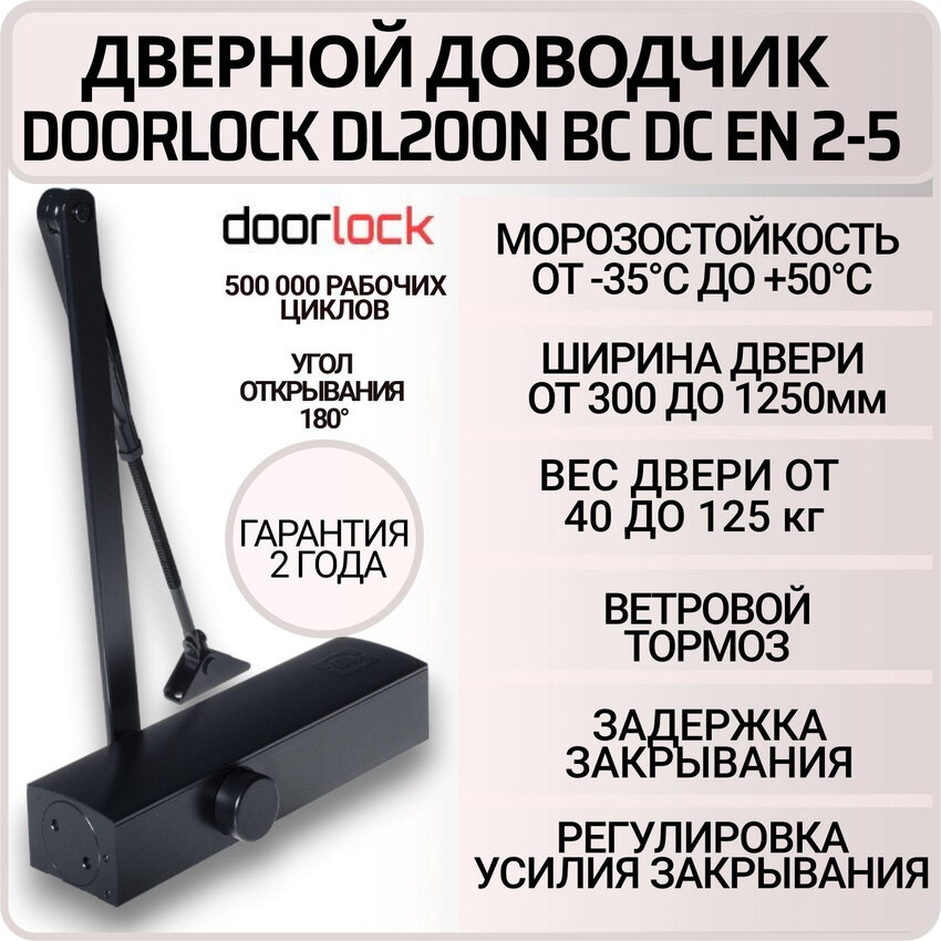 Купить Доводчик дверной DOORLOCK DL200N BC DC EN 2-5 морозостойкий черный до 125 кг.