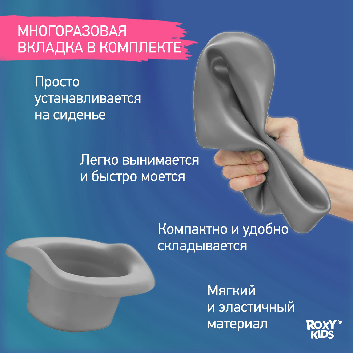 СохранитьГоршок детский дорожный складной с многоразовой вкладкой HandyPotty 3 в 1 от ROXY-KIDS, цвет серый/серый интересное: