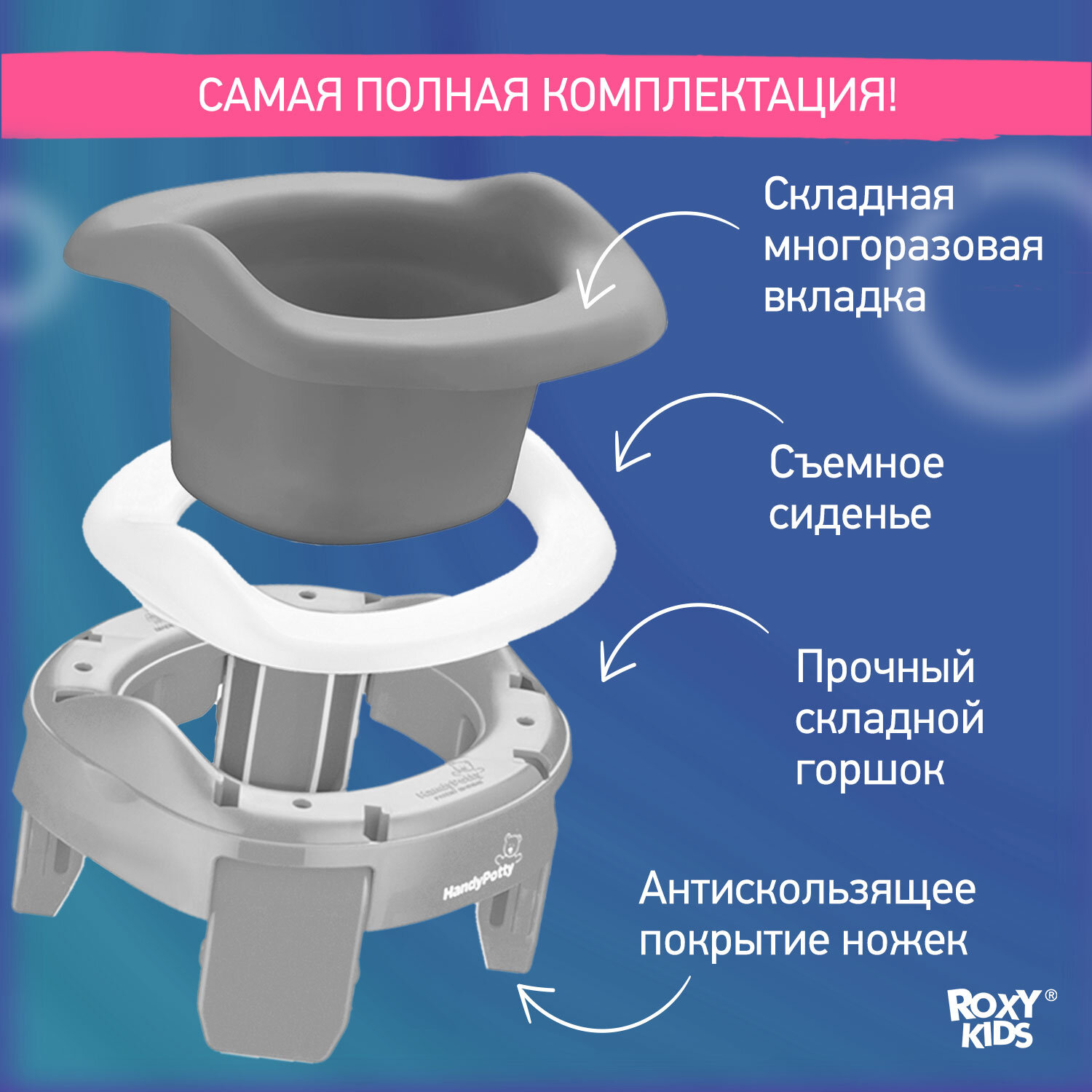 Горшок дорожный складной с многоразовой вкладкой HandyPotty 3 в 1 от ROXY-KIDS, цвет серый/серый