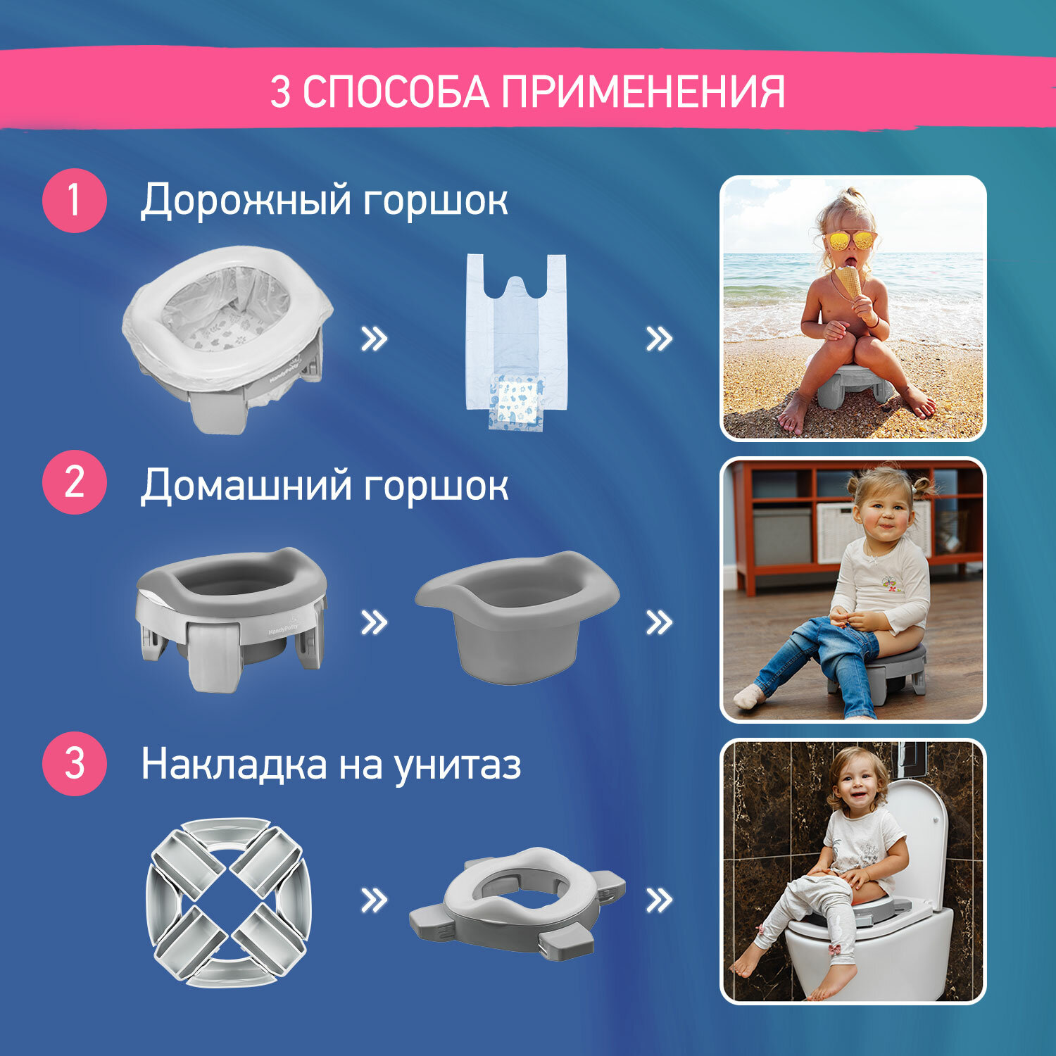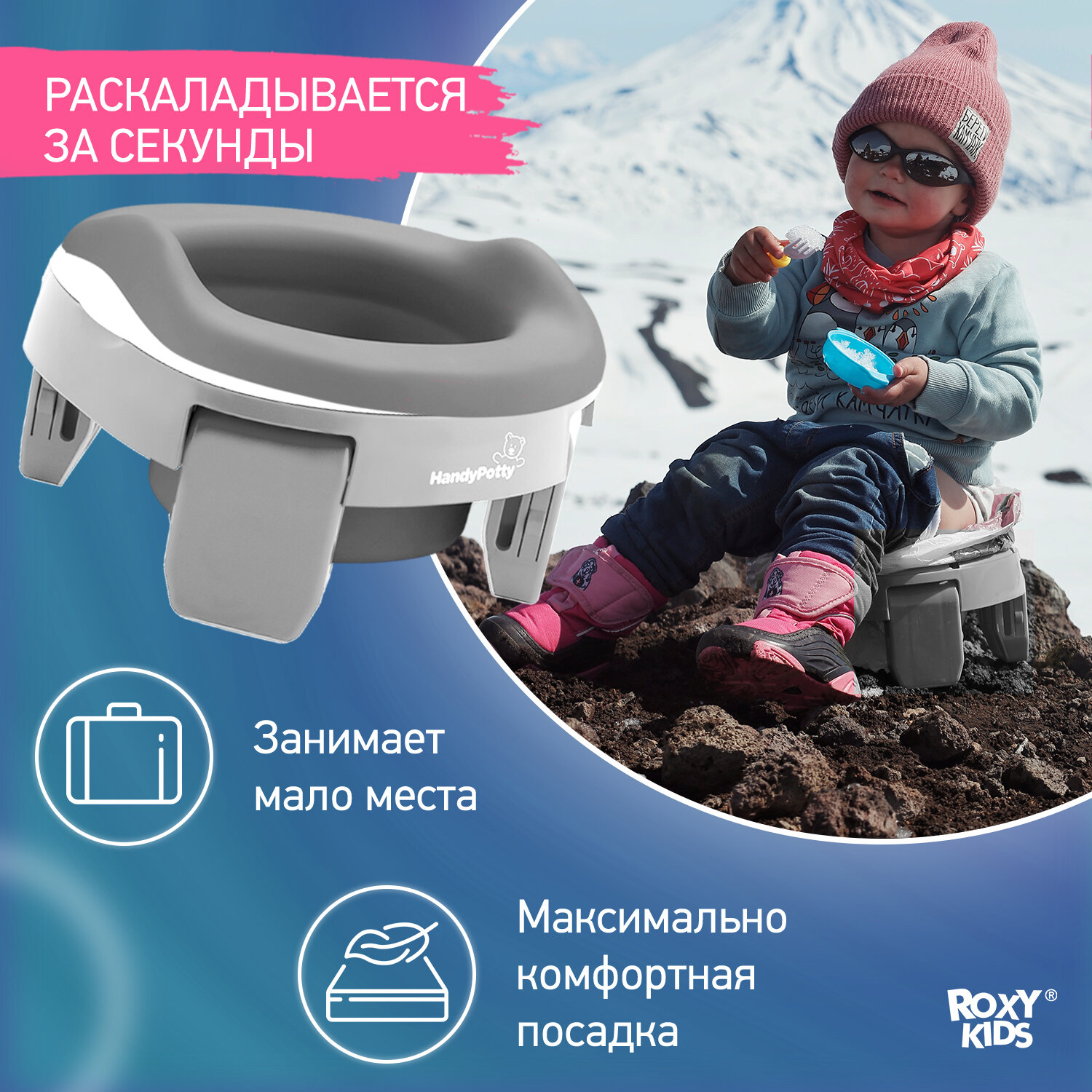 Горшок детский складной дорожный 3в1 для малышей HandyPotty ROXY-KIDS