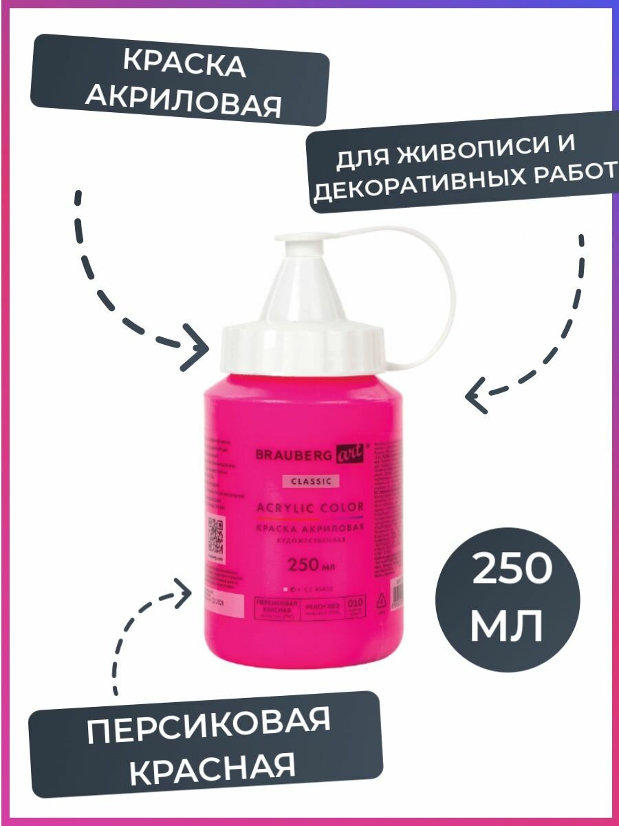 Краска акриловая художественная 250 мл, Brauberg ART Classic, Персиковая красная, 191712 9849829 .