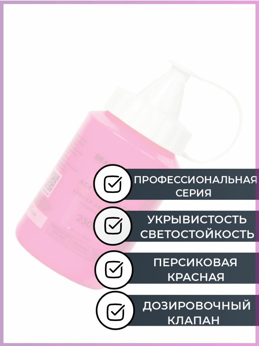 Краска акриловая художественная Brauberg Art Classic, флакон 250 мл, Персиковая Красная, 191712