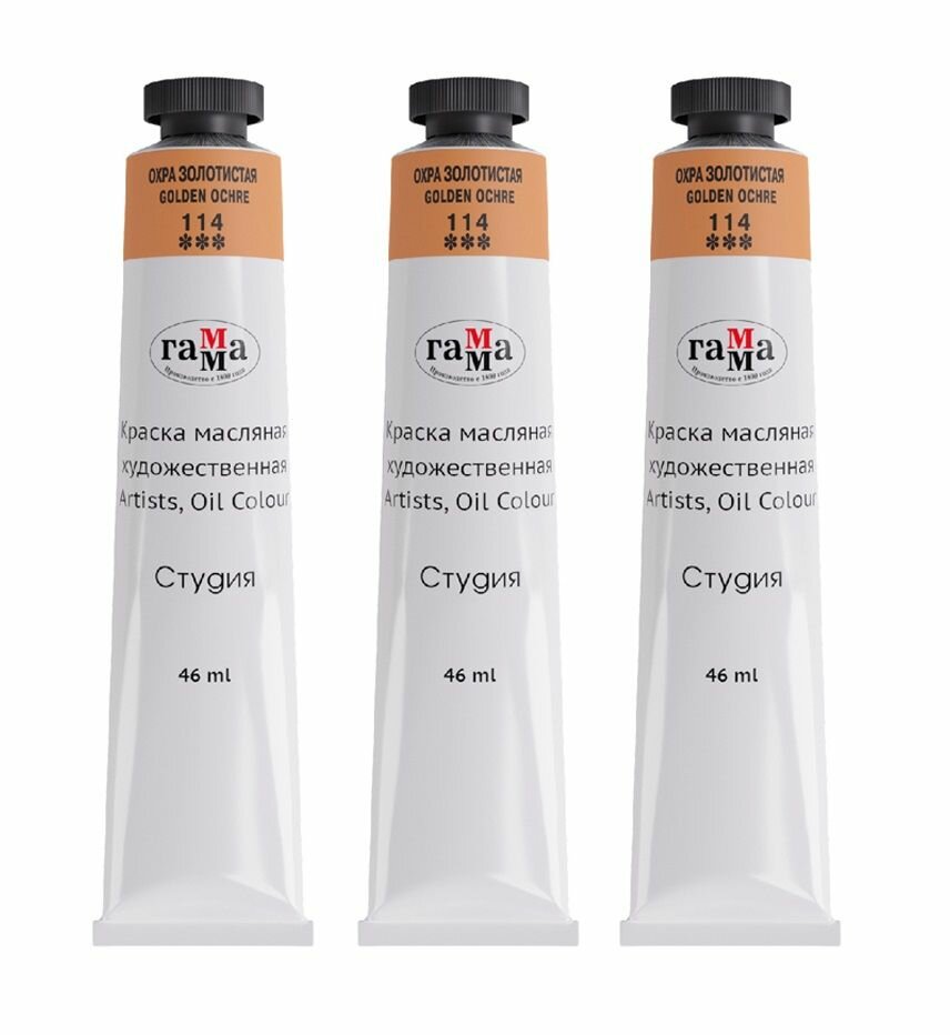 Краска масляная художественная Гамма "Студия", туба 46мл, охра желтая (0.00.А046.116), 3шт.