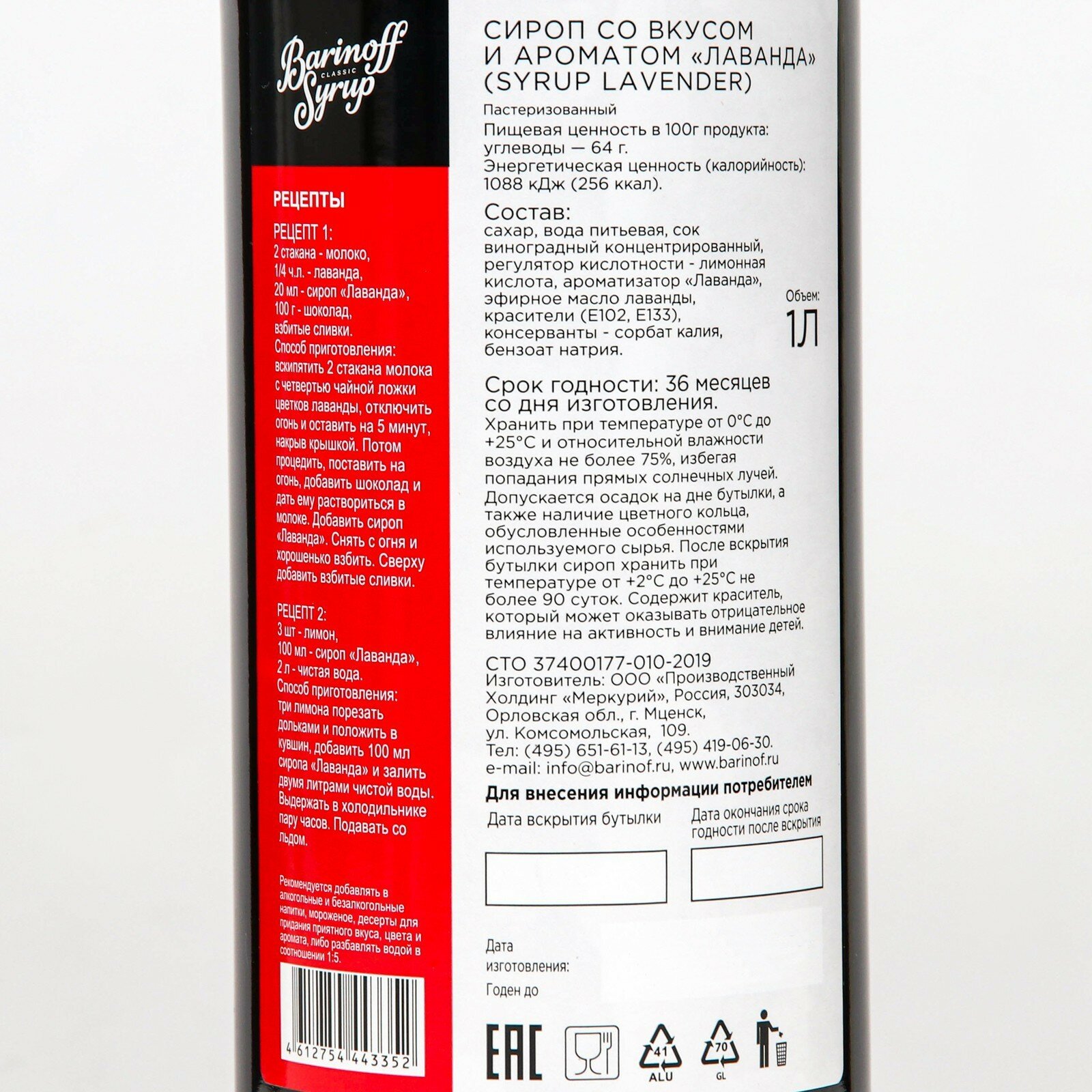 Баринофф Сироп Лаванда 1л.*1шт. Barinoff интересное: