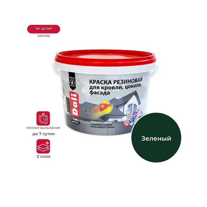 СохранитьКраска резиновая DALI эластичная для кровли, цоколя, фасада, зеленый - 3 кг интересное: