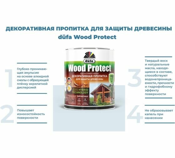 Dufa Wood Protect / Дюфа Вуд Протект Пропитка декоративная для защиты древесины бесцветный 2,5л
