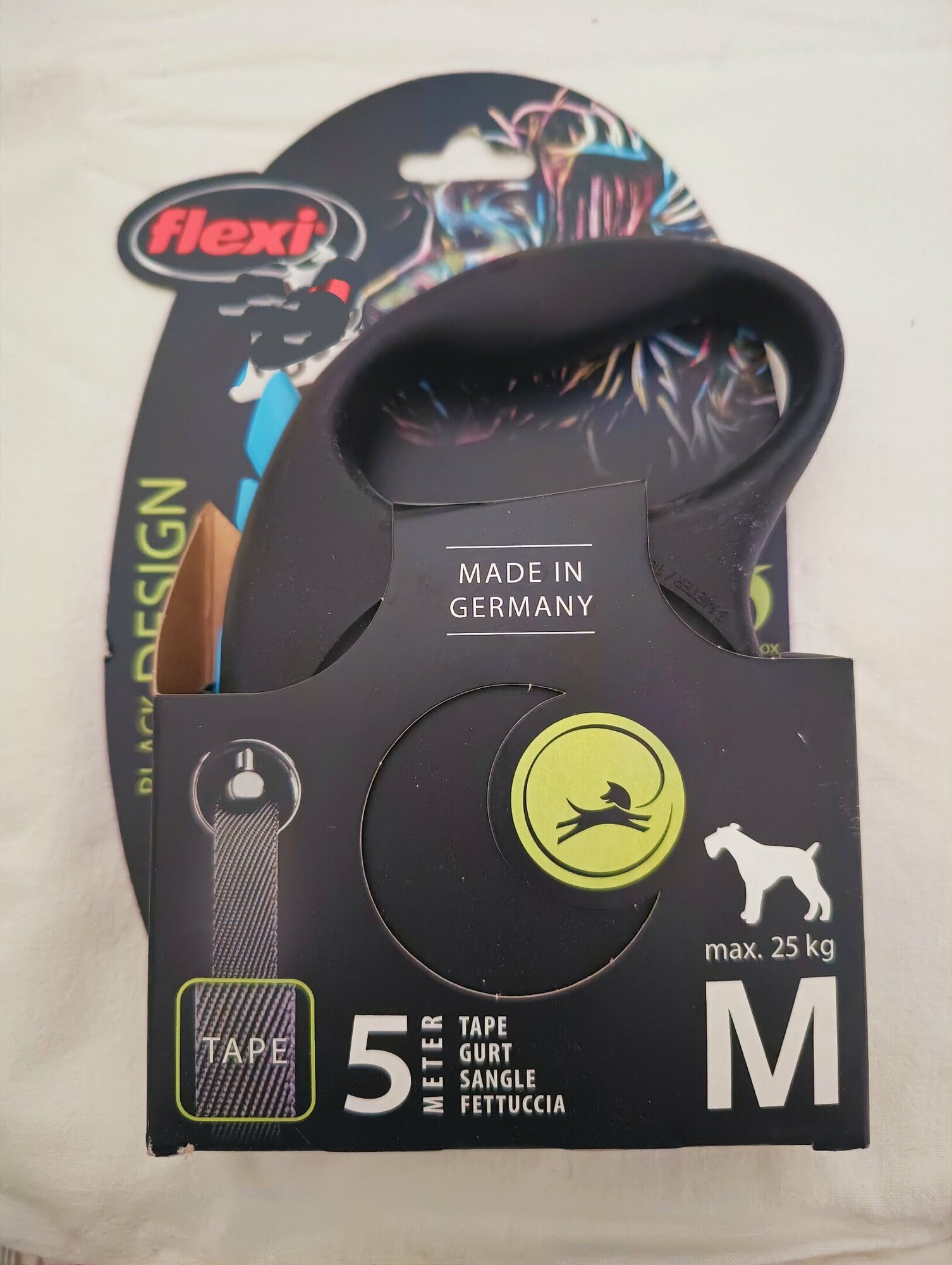 flexi рулетка Black Design M до 25 кг черный/зеленый, 5 м лента