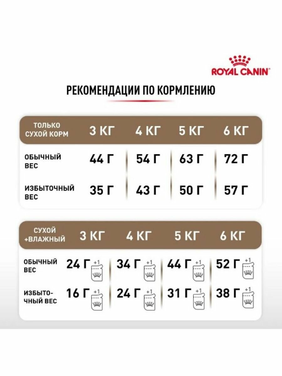 | Особые потребности | для стерилизованных/кастрированных / профилактика МКБ / профилактика избыточного веса |