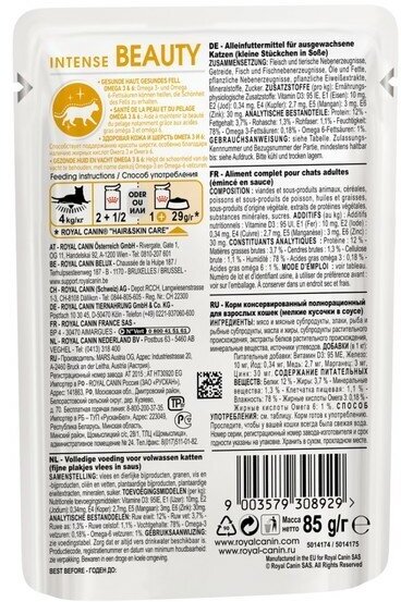 Влажный корм RC Intense Beauty для кошек, для кожи и шерсти, в соусе, пауч, 85 г 28 шт