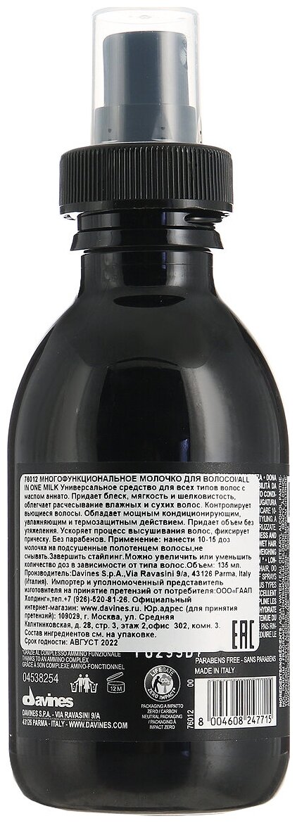 DAVINES - OI/All in one milk - Многофункциональное молочко, 135 мл