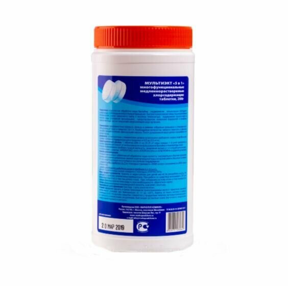 Дезинфицирующее средство "Мультиэкт 5 в 1", для воды в бассейне, комплексный препарат, таблетки 200 г, 1 кг для дома